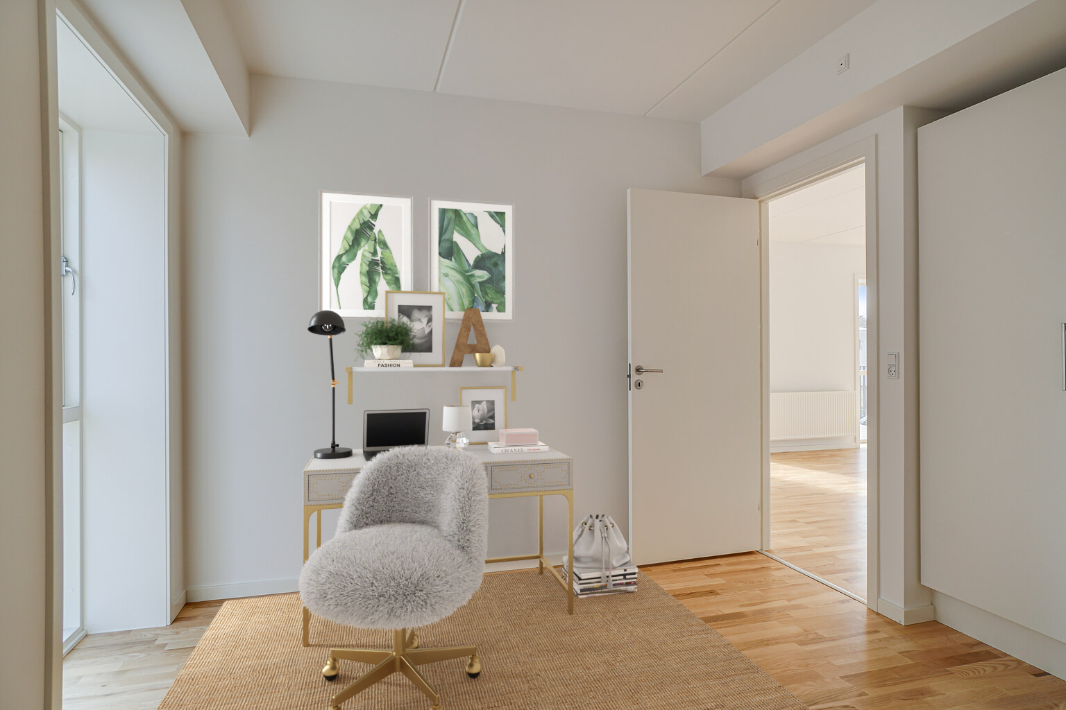 Lejligheden lejes umøbleret. Billederne skal derfor blot anses som inspiration til møblering.